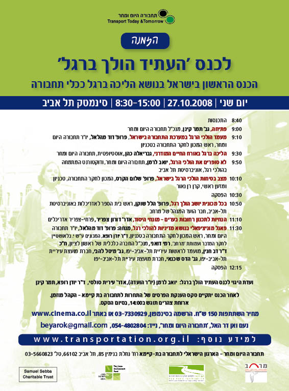 הכנס יתקיים ביום שני 27.10.2008 בסינמטק תל-אביב והוא נערך מטעם הארגון 'תחבורה היום ומחר'.